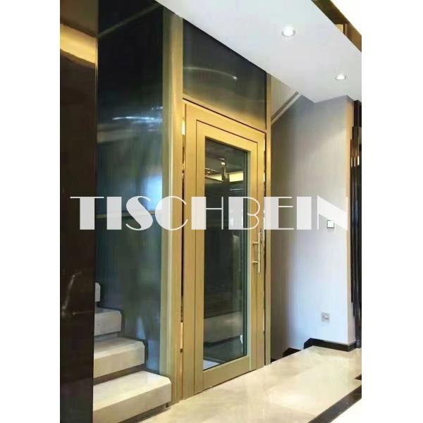 Golden Color Steel Structure Shaft Residential Building Home Elevators 300kg 320kg 400kg 3-5 Stops 0.5m/s Low Noise Images |